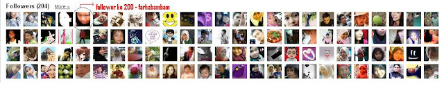 - Follower aku dah pun mencecah 200 orang.. Alhamdulillah.. Terima kasih la sebab sudi follow blog yang x seberapa ni. Insyaallah, aku akan cube memperbaiki segala kelemahan dan kekurangan aku dan blog aku. Segala pendapat dan cadangan sentiasa aku alu-alukan k..
